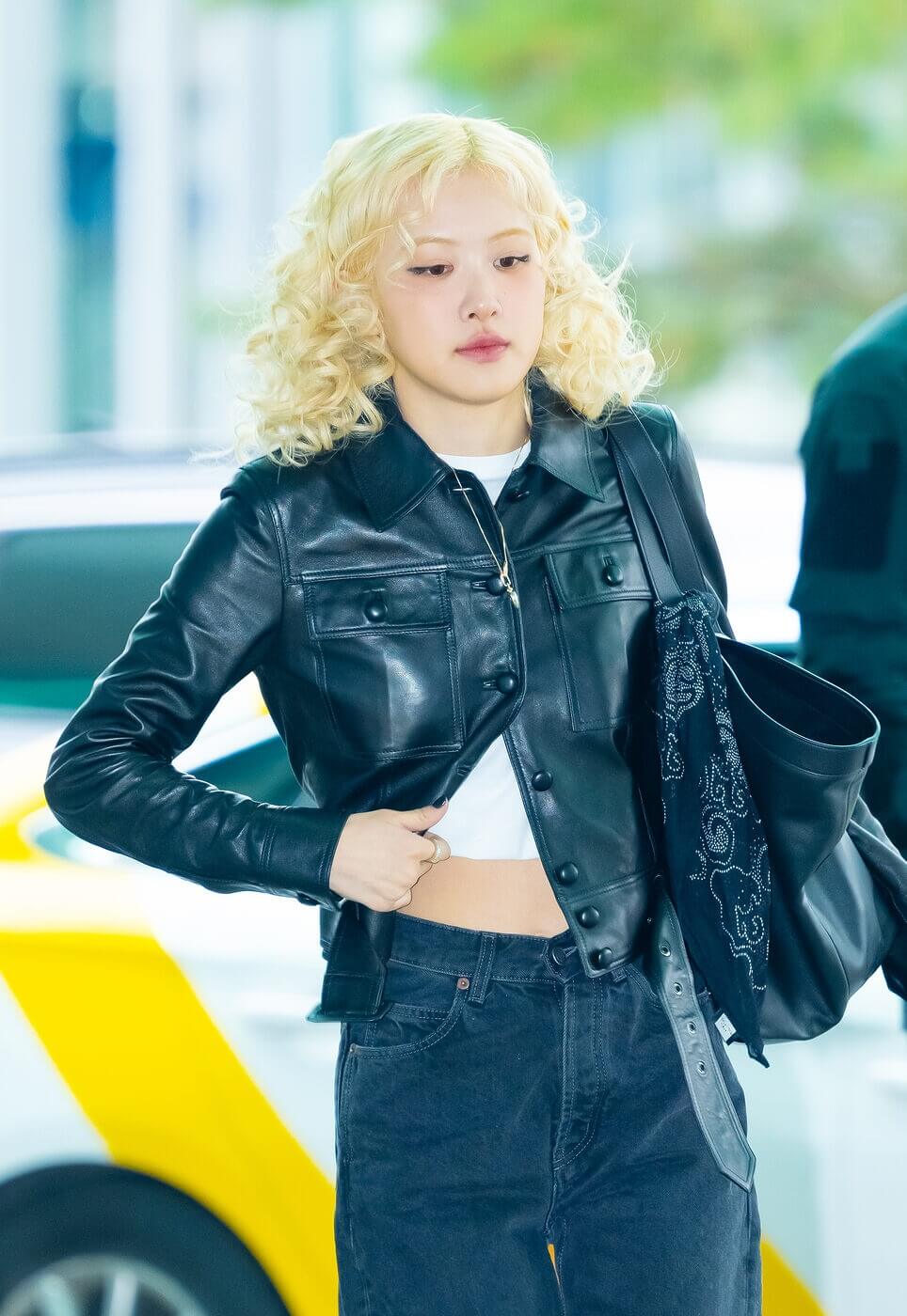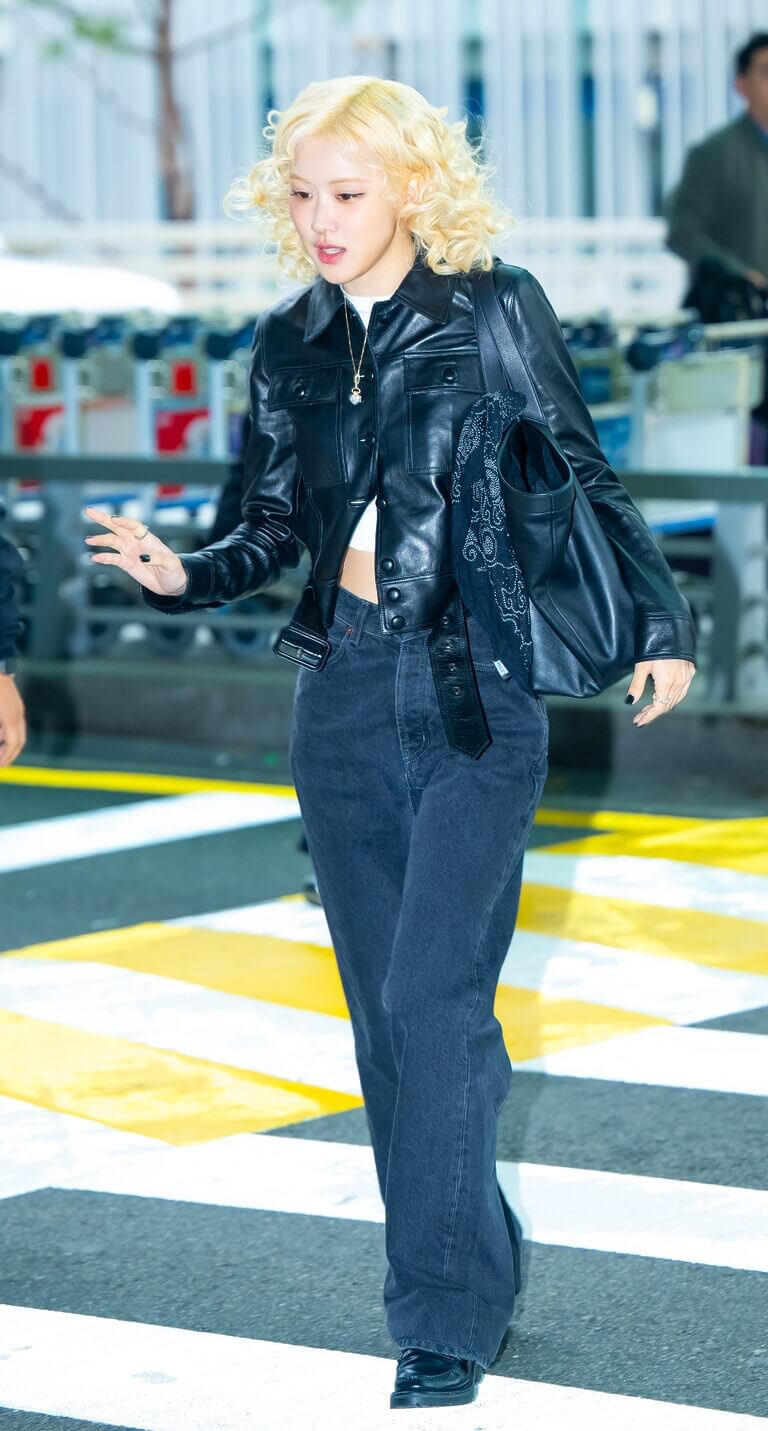 러블리한 모습으로 모두의 주목을 받았던 로제의 공항 패션입니다. 입생로랑 가방을 메고 등장했는데 전체적인 올블랙 룩과 가방이 정말 잘 어울리네요.
