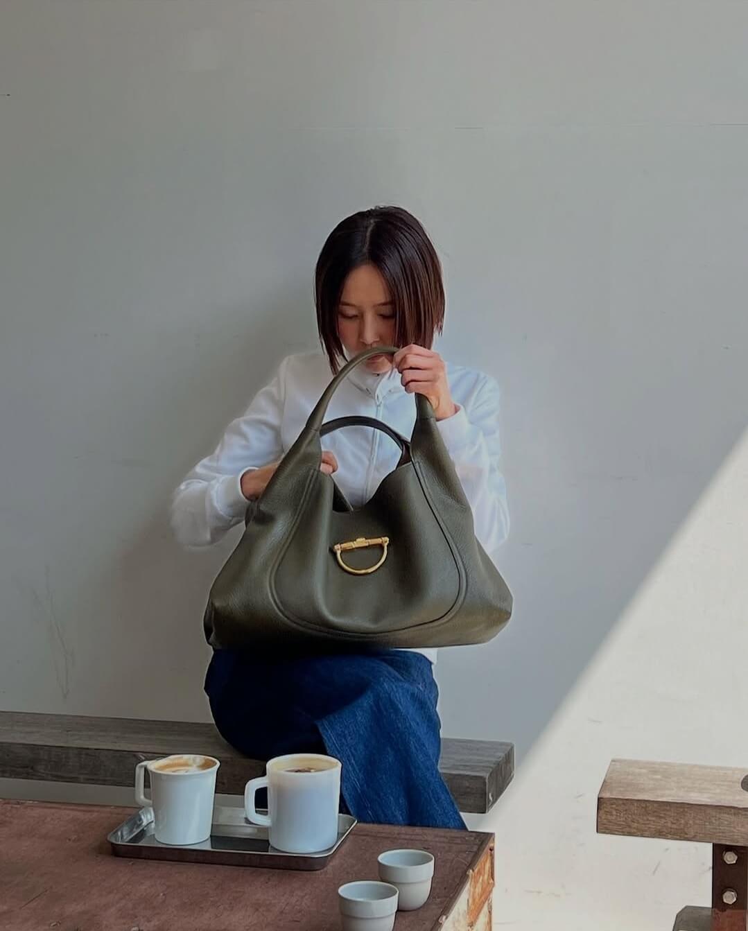 김나영은 다크 그린 색상의 구찌 소프트빗 숄더백을 착용했습니다.