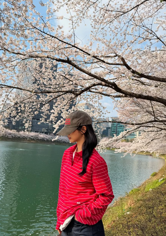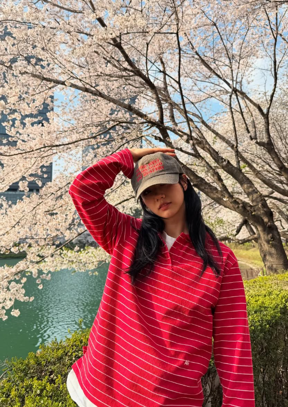 오늘은 걸스데이 혜리가 벚꽃 나무 아래에서 찍은 사진 속 카라티셔츠를 소개해드리려고 합니다.