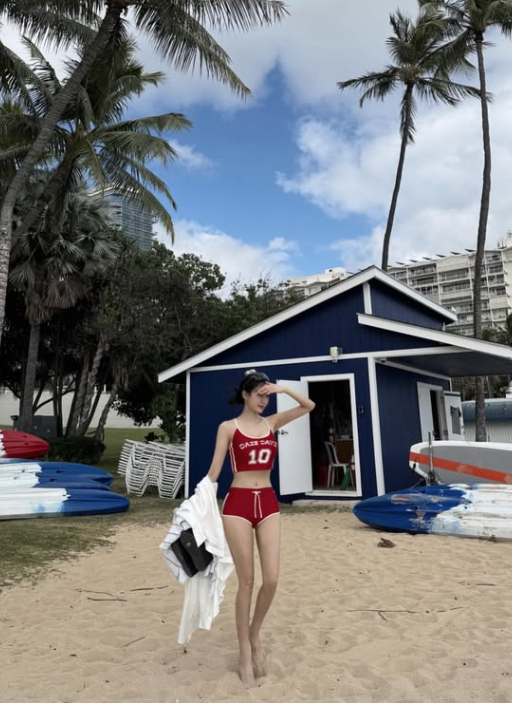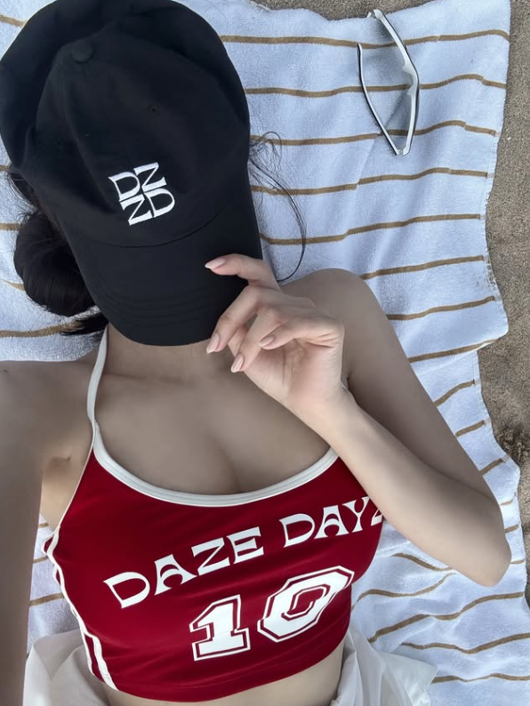 효민이 하와이 신혼여행지에서 입은 비키니는 데이즈데이즈(DAZE DAYZ)의 시그니처 로고 크롭탑입니다.