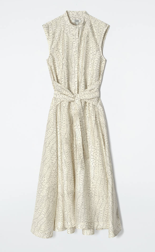 cos의 프린티드 플루이드 타이 웨이스트 미디 드레스는 실키한 소재의 고급스러운 여름 원피스를 찾으시는 분들께 좋은 선택지가 될 것 같습니다.