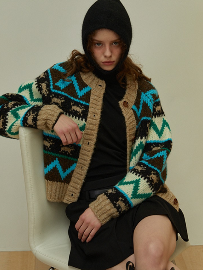 수영 생일에 입고 온 저 가디건인데요, 저 제품도 그린버터의 코위찬 가디건입니다. 따뜻한 느낌에 기하학적 패턴이 특이하고 예쁘죠?