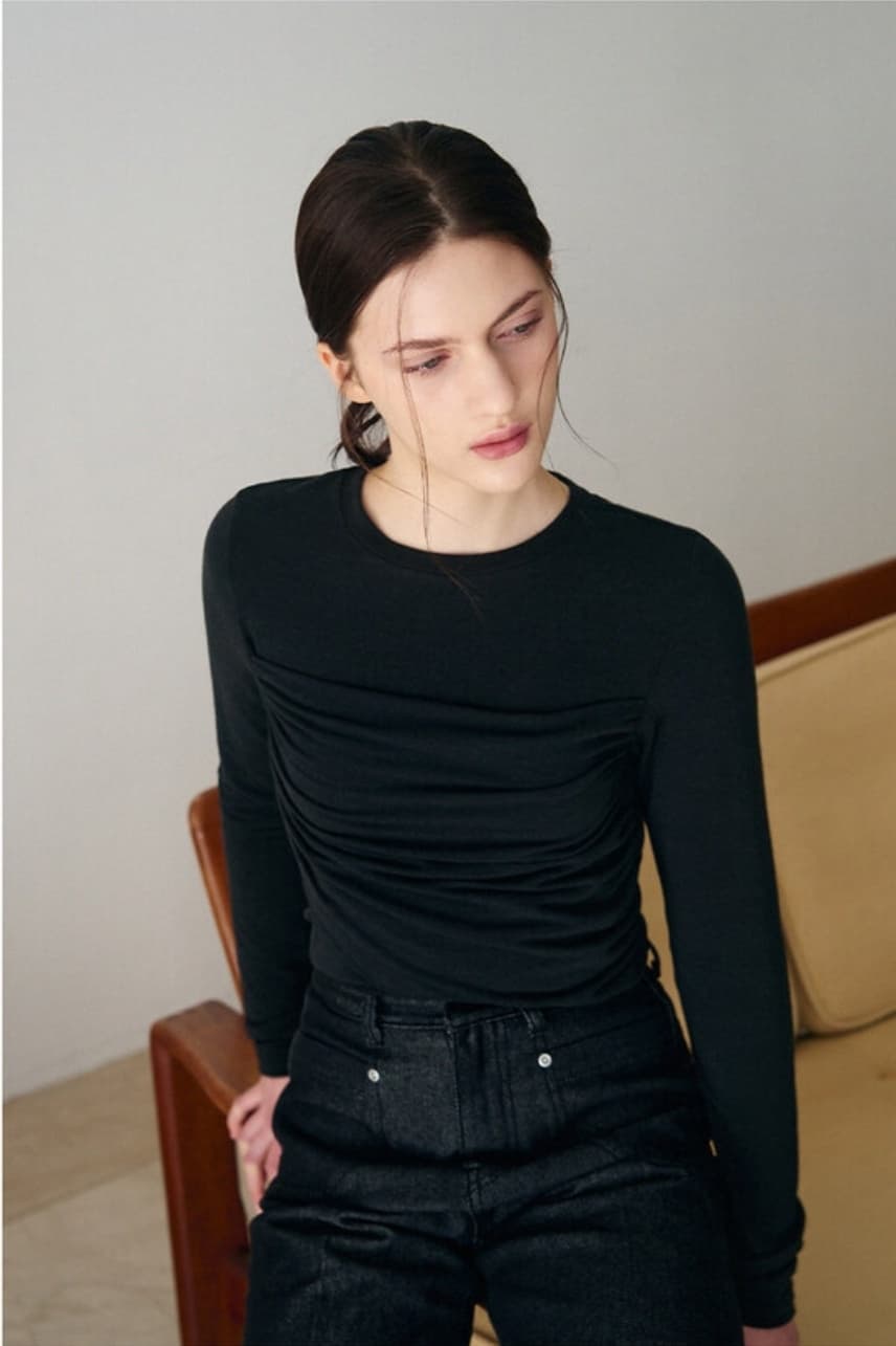 어깨선을 부드럽게 감싸는 어깨패드가 얇게 내장되어 있습니다.