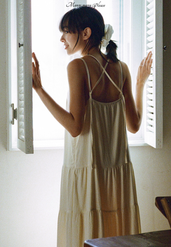 특히 어깨끈은 홀터넥과 크로스 두가지 방식으로 연출이 가능해 다양하게 입으실 수 있으며 전체적으로 잔잔하게 잡힌 셔링이 사랑스러운 무드를 담아냈습니다.