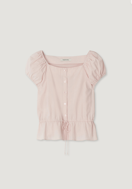 시원한 소재에 어깨 퍼프와 허리 스트링으로 귀엽게 코디가 가능한 블라우스입니다. 스퀘어 넥 디자인으로 예쁜 목걸이와 스타일링하면 좋겠다라는 생각이 들었습니다.