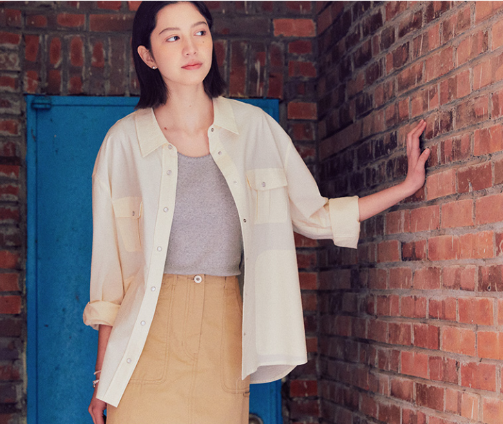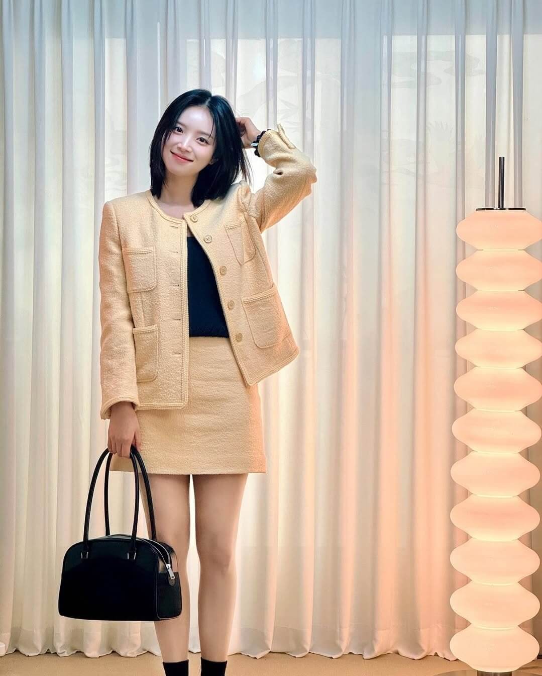 김지영 님이 착용한 것처럼 동일 소재의 스커트와 셋업으로 스타일링 할 수 있습니다.