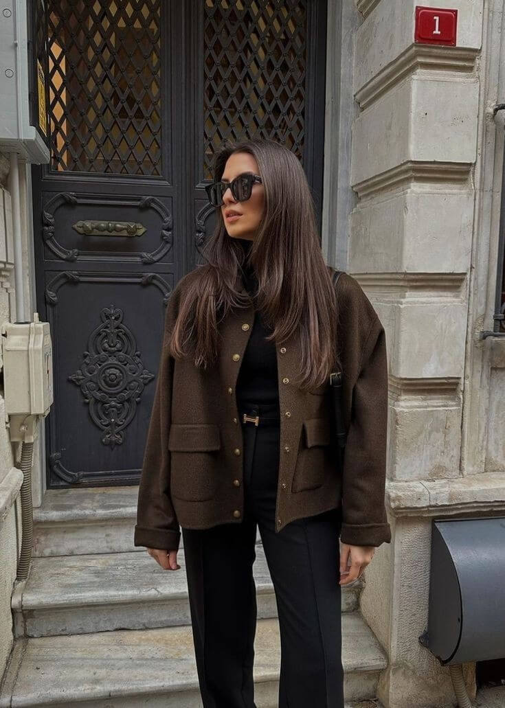핀터레스트에서 많은 셀럽, 인플루언서들이 브라운 재킷으로 코디하고 있어서 사진 몇장 구해왔습니다.