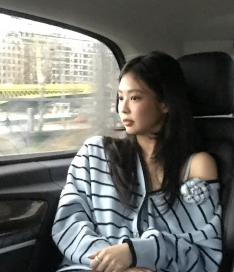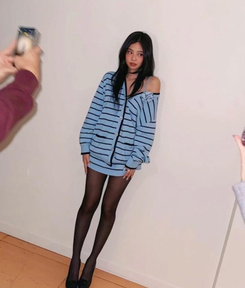 이 날 제니는 파리 해션 위크에 참석 중이었고 샤넬 2025 S/S 컬렉션 가디건을 제니 스타일로 소화해냈습니다.