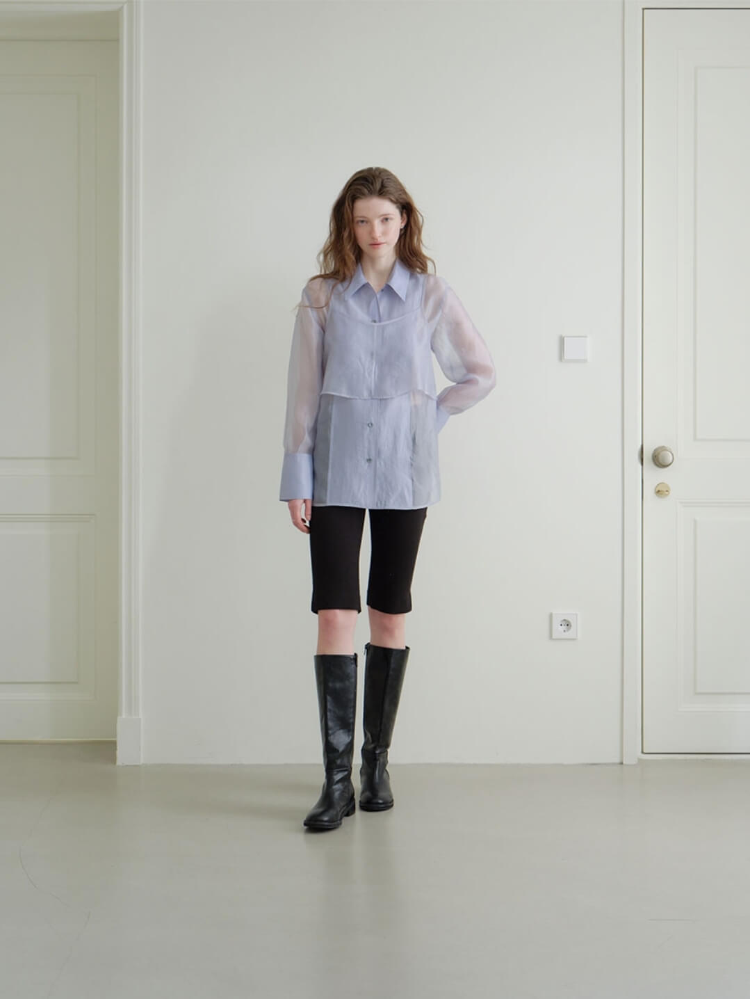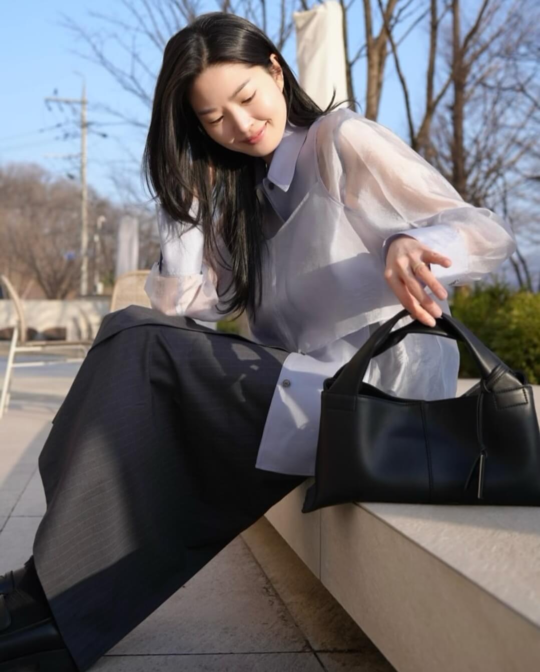 류이서 데일리룩 조이그라이슨 Sheer Organza Blouse Set Up
