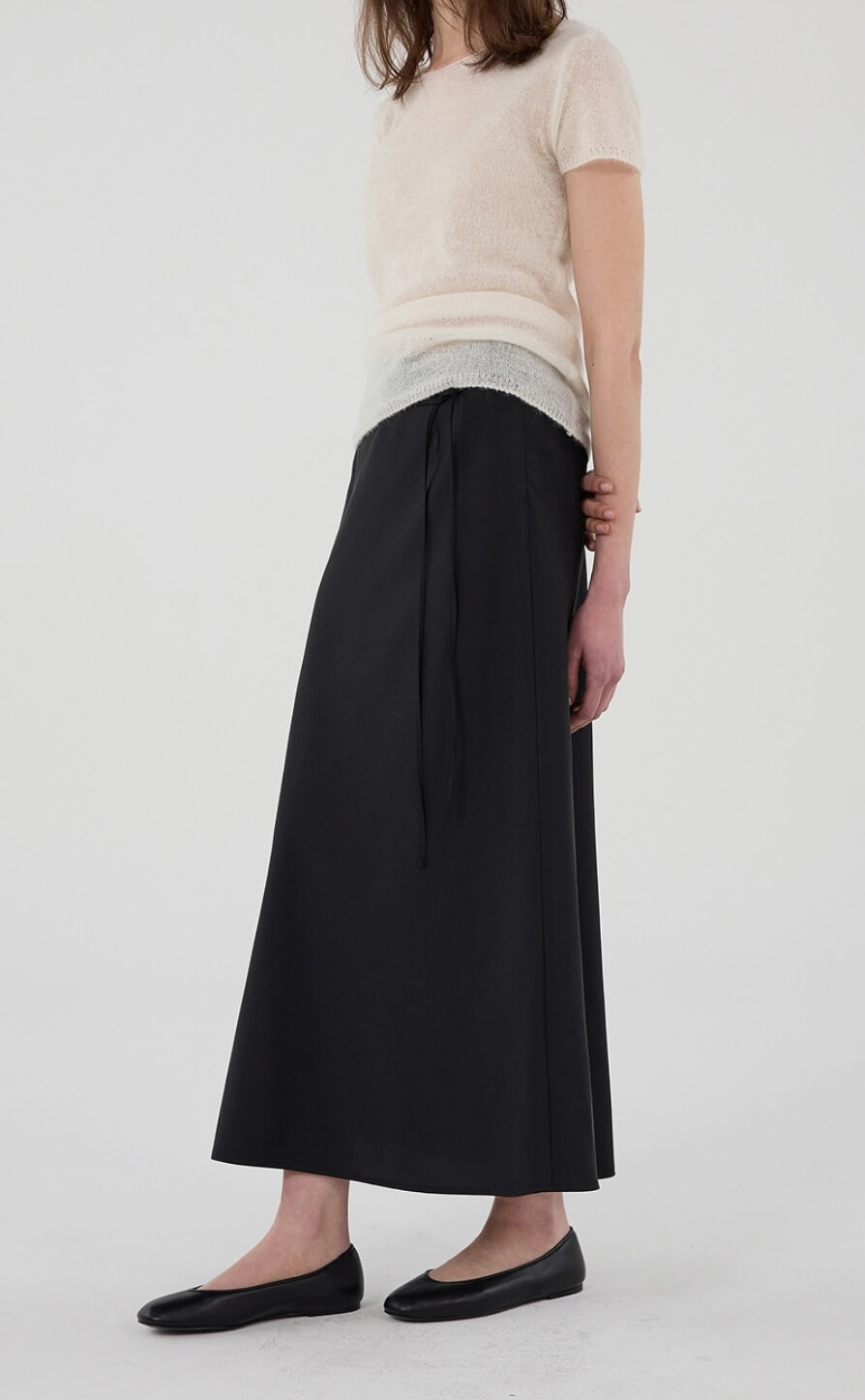 브랜드 쇼핑몰 체에도 맥시 스커트 제품이 있습니다. 더욱 레더자켓과 잘 어울릴 것 같은 이유는 은은한 광택이 감도는 원단이기 때문입니다.