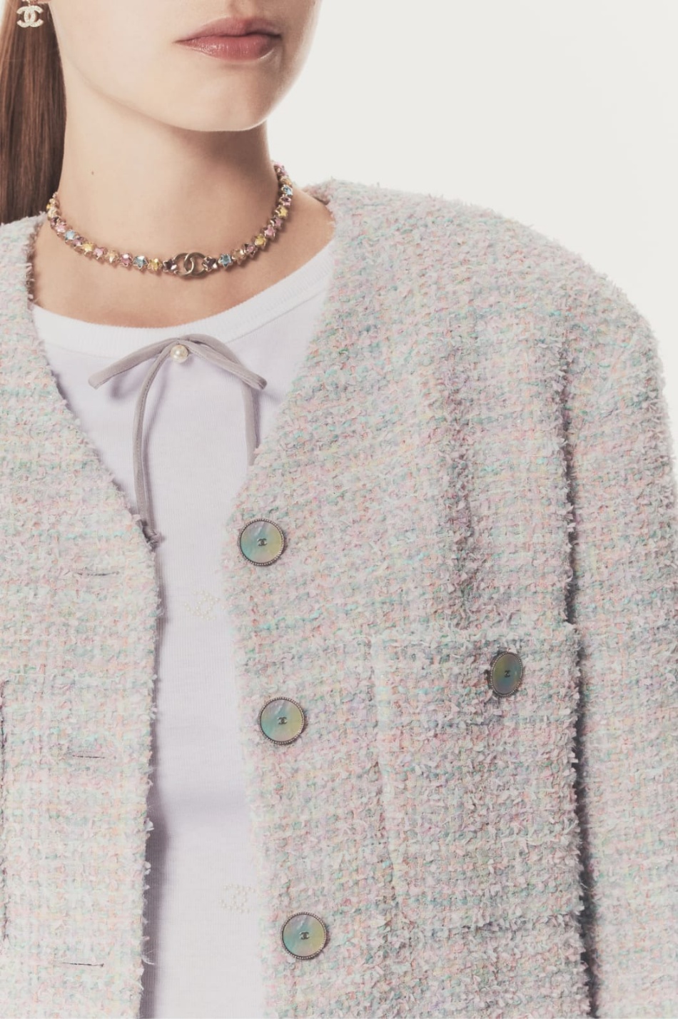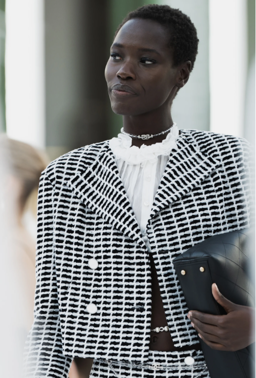 '샤넬 2025 봄-여름 오뜨 꾸뛰르 컬렉션' 참석차 파리로 출국 중인 배우 고윤정의 트위드 자켓을 자세히 알아보겠습니다.