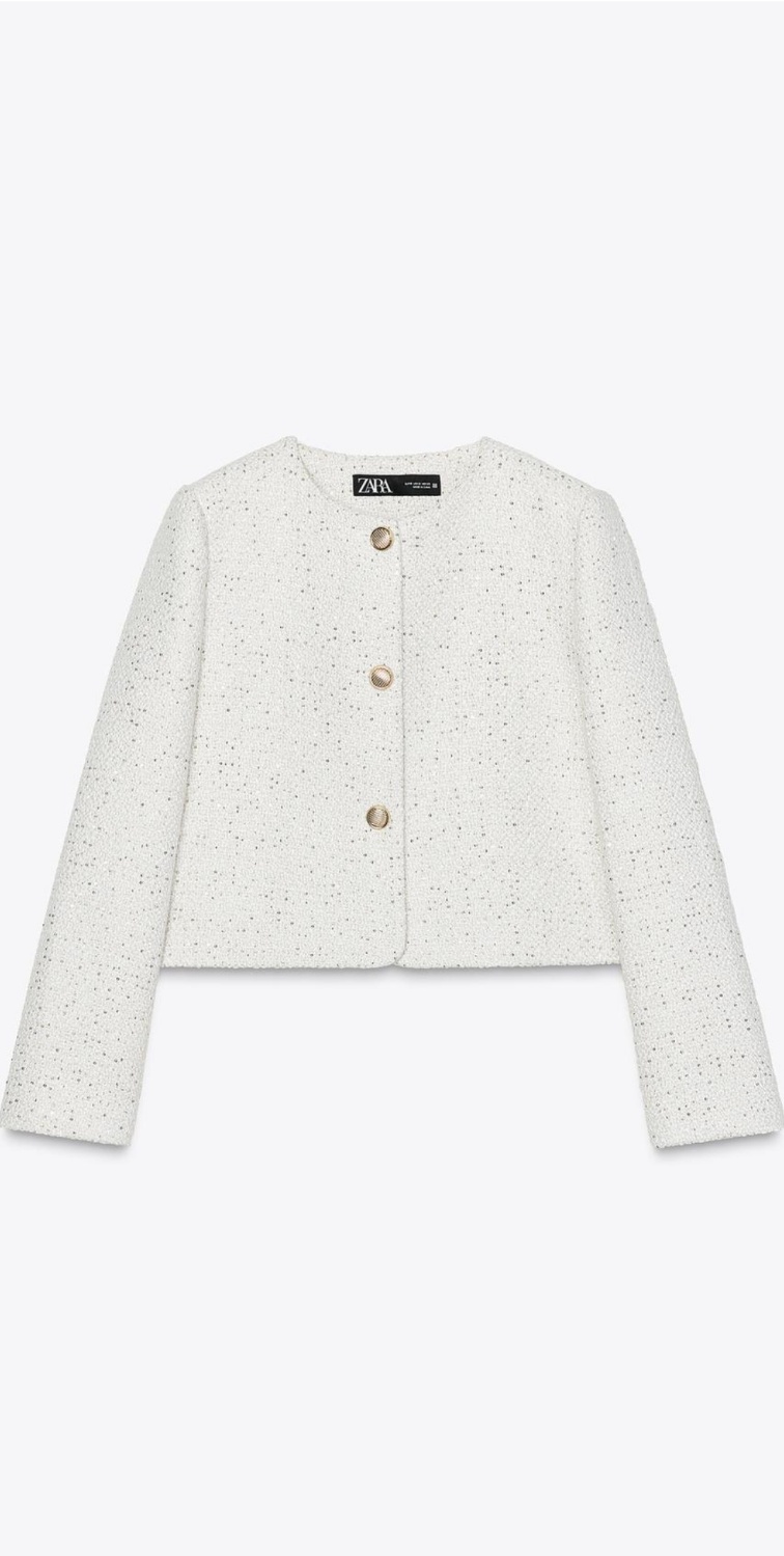 ZARA 스트럭처 시퀸 블레이저 - 크림